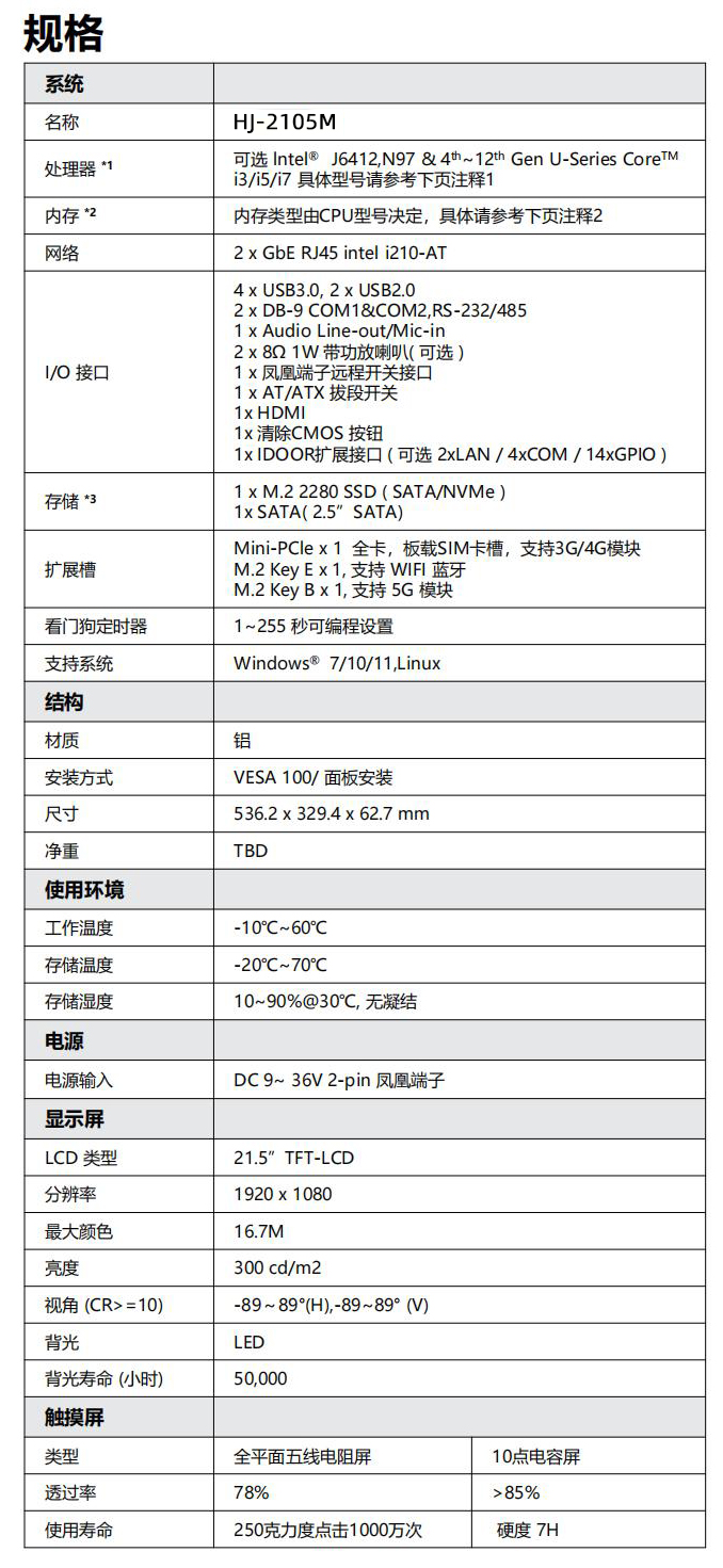 華頡科技工業平板電腦提供多樣的規格尺寸,包括10.1寸、12.1寸、15寸、15.6寸、17寸、18.5寸、19寸、21.5寸、23.8寸、27寸等多種尺寸可選,以21.5寸規格為例